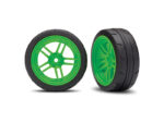 Kompletní přední kola pro RC modely auta Traxxas 4-Tec 2.0. Zelené disky Split-spoke s pneumatikami Response (2 ks v balení).