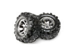 Kompletní kola pro RC auta. Chromované disky Geode s nalepenými pneumatikami Canyon AT a vložkou. Rozměr disku 97×70 mm. Celkový rozměr 180×95 mm Unašeč je šestihran 17 mm s drážkami a offsetem 35 mm.