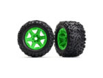 Kompletní univerzální kola pro RC auta E-Revo (2ks v balení). Disky v zelené barvě s nalepenými pneumatikami Talon EXT a vložkou.