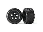 Kompletní univerzální kola pro RC auta LATrax Teton 1:18. Pěti-paprskový disk v černém provedení s nalepenými pneumatikami Teton. Rozměr disku 40/48×30 mm.