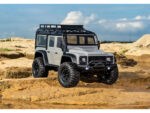 RC model auta Traxxas TRX-4M Land Rover Defender v měřítku 1:18 s úžasnou všestranností a schopnostmi. Kovový rám podvozku s 4-bodovým zavěšením, olejové tlumiče, úhel zatáčení 45°, licencovaná bez-sponková karoserie, LED osvětlení v nárazníku. Baterie 2S LiPo a USB nabíječ.